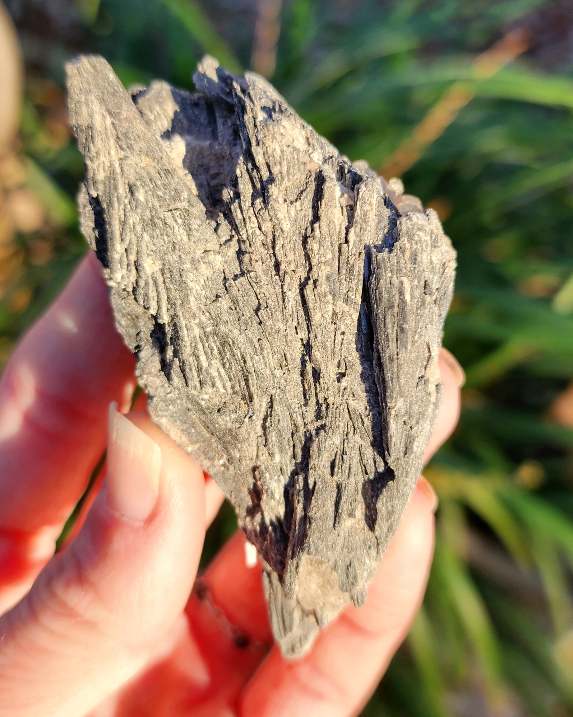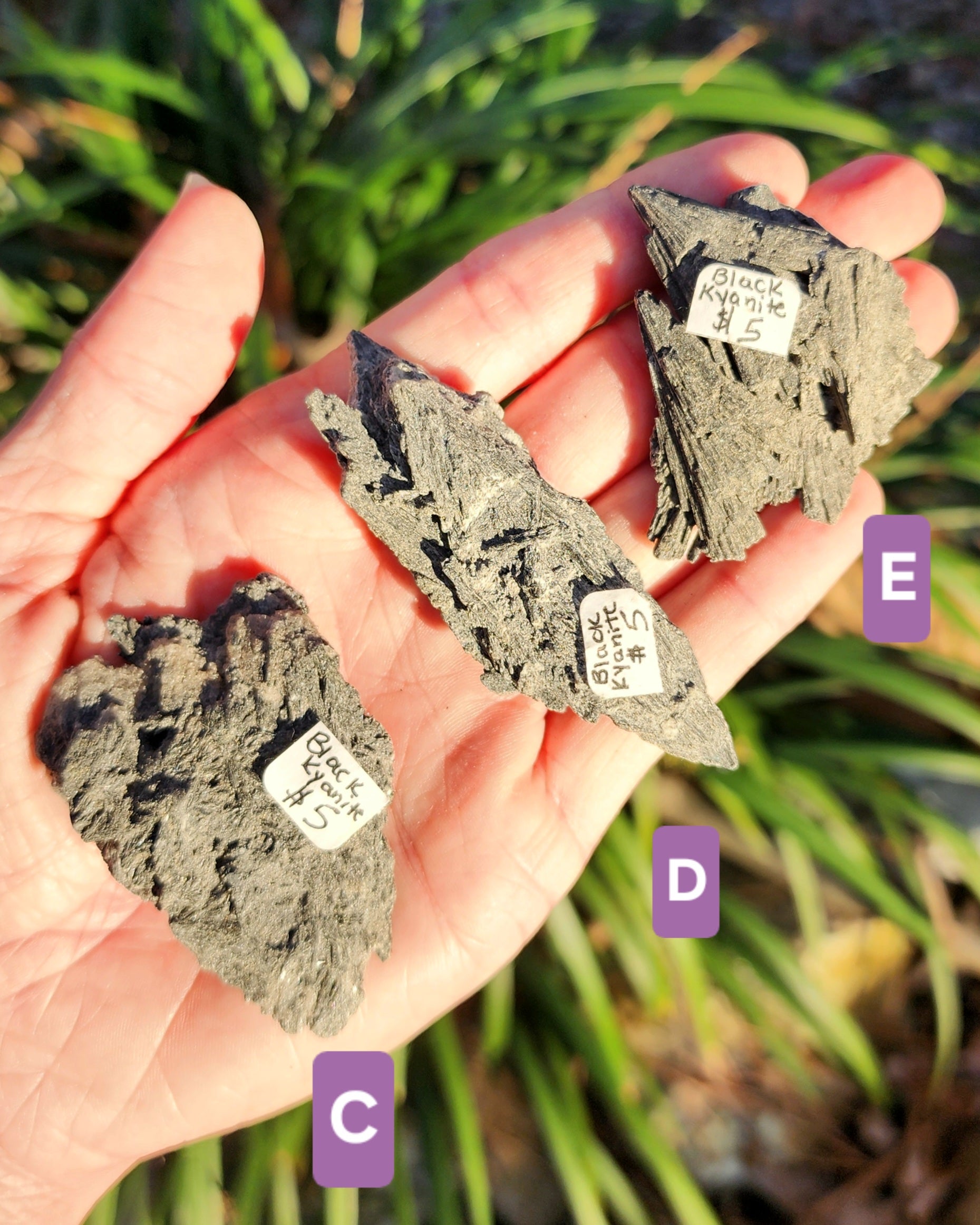 Black Kyanite activates your entire chakra column while helping you realign your entire body and spirit. It is said to be the stone of self discovery, helping you to gain clarity and remove energy blocks. It is often carried by empaths to reduce taking on the emotions of others around them. Black Kyanite creates a protective energy field around you.