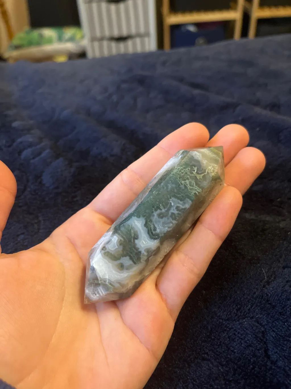 Moss Agate is the stone of new beginnings, abundance, and growth. It can be used to return to the connection with nature. It is said to remove fears and blocks preventing you from following your soul's calling.
