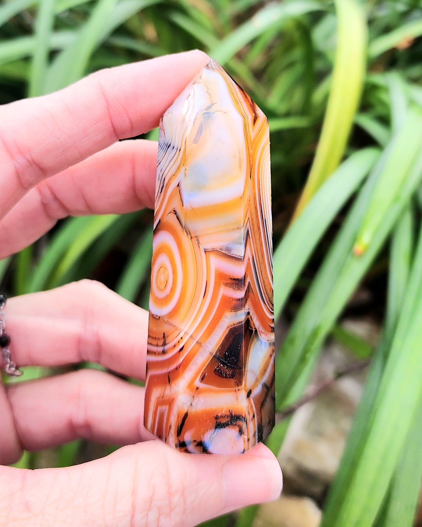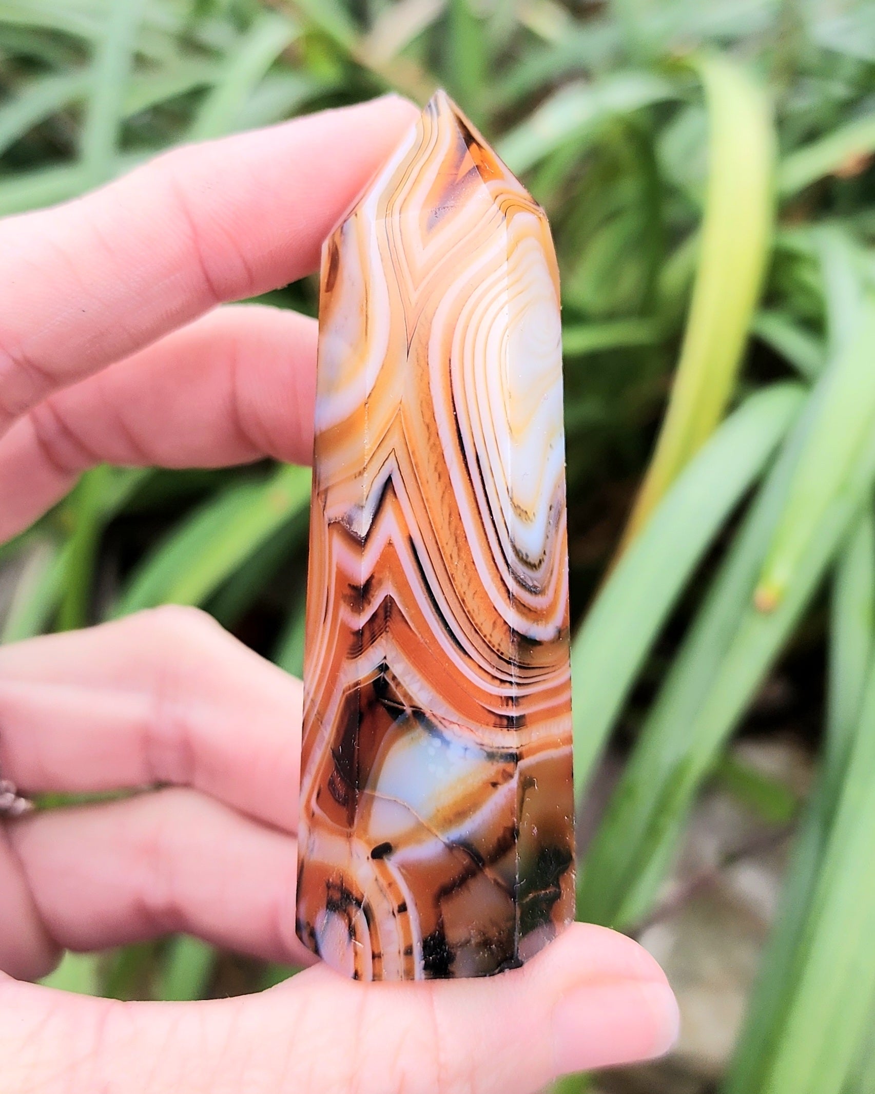Sardonyx combines the grounding and protecting energies of Onyx, with the strength and courage energies of Carnelian, thus it is considered a stone of protection and courage. It is said to bring stability and self confidence. It can bring a joyful and hopeful energy that can be spread to others. Sardonyx can help bring you back on earth after spiritual work.