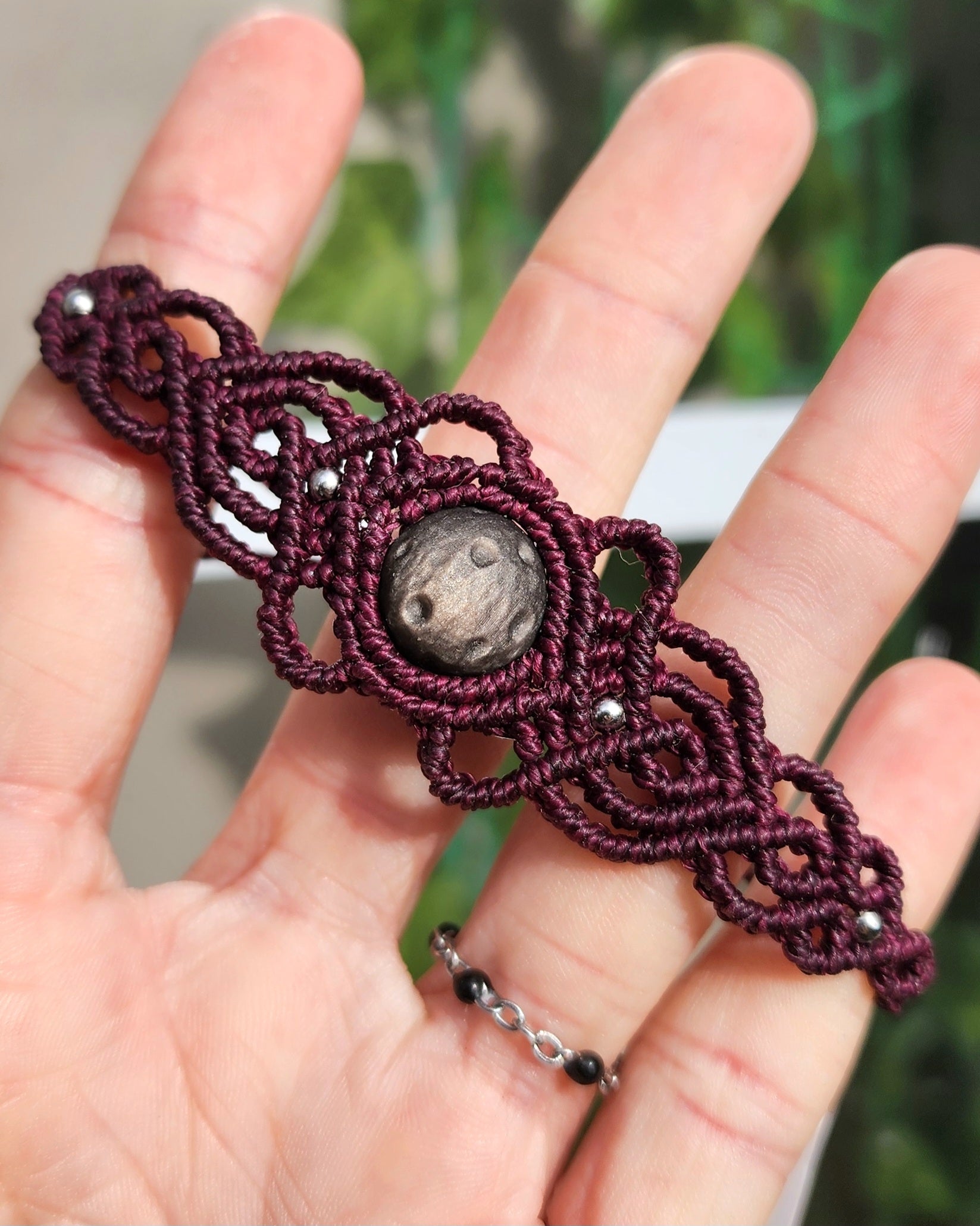 Silver Sheen Obsidian Full Moon Macrame Lacy Bracelet