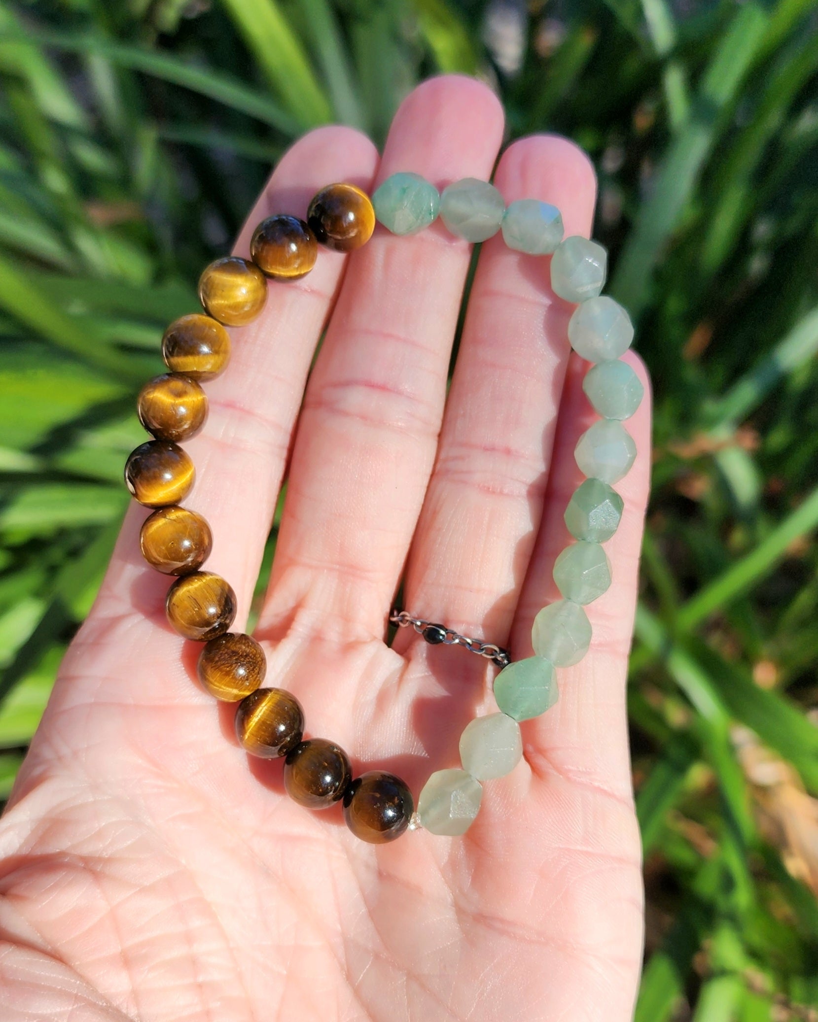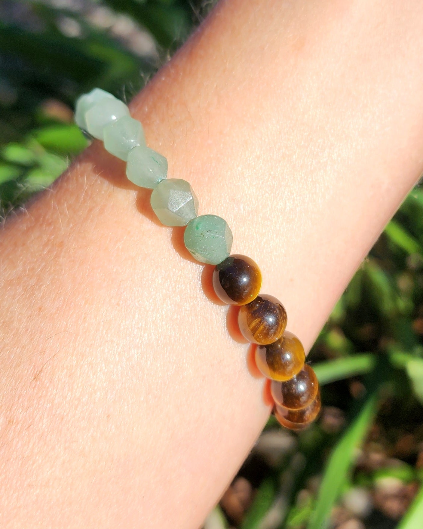 This listing is for one Tiger Eye & Green Aventurine stretchy bracelet