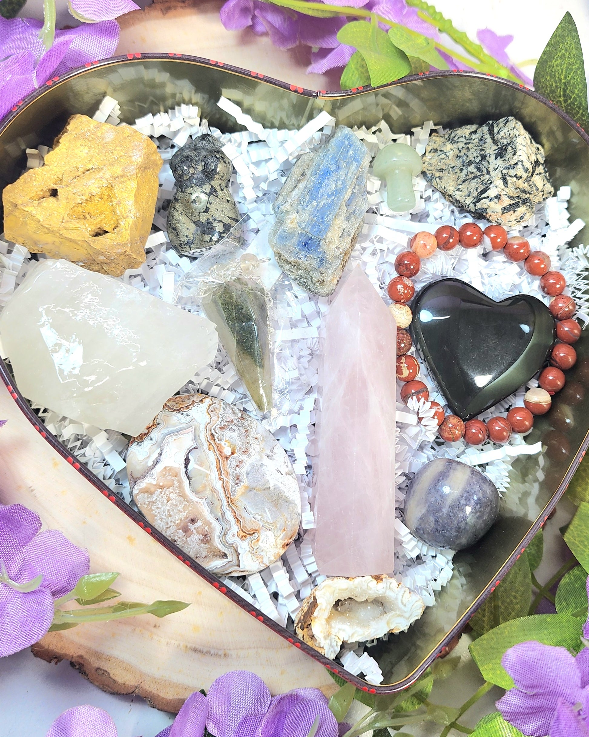 - Heart (Rainbow Obsidian, Orange Calcite, or Fluorite)